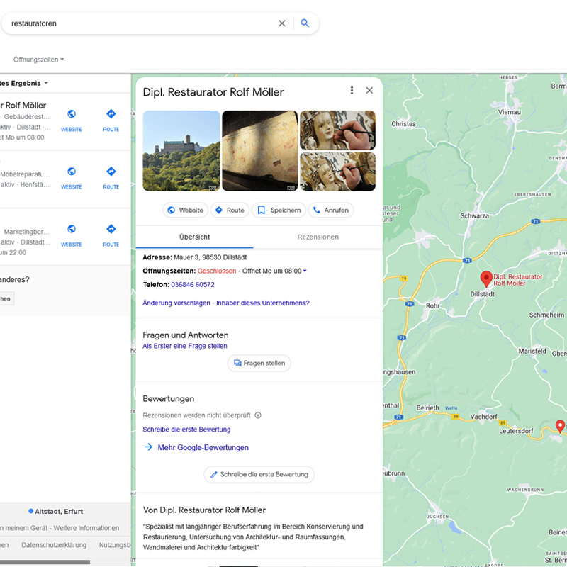 Platz 1 bei Suchbegriff "Restaurierung" mit Google Snippets, romoe.com März 2023.